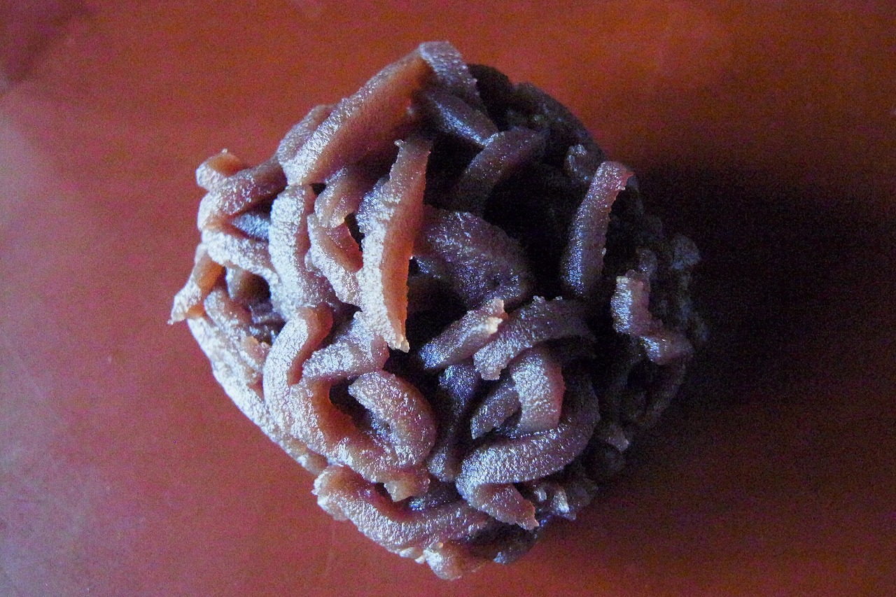 黒の銘は、大島。黒糖のしっかりした香り。ちょっと太めのそぼろ。