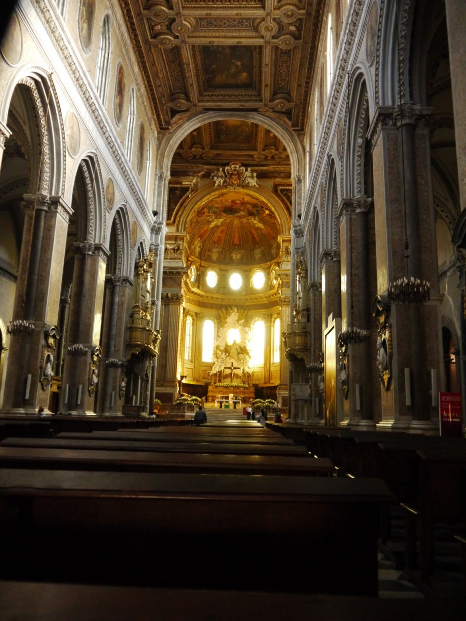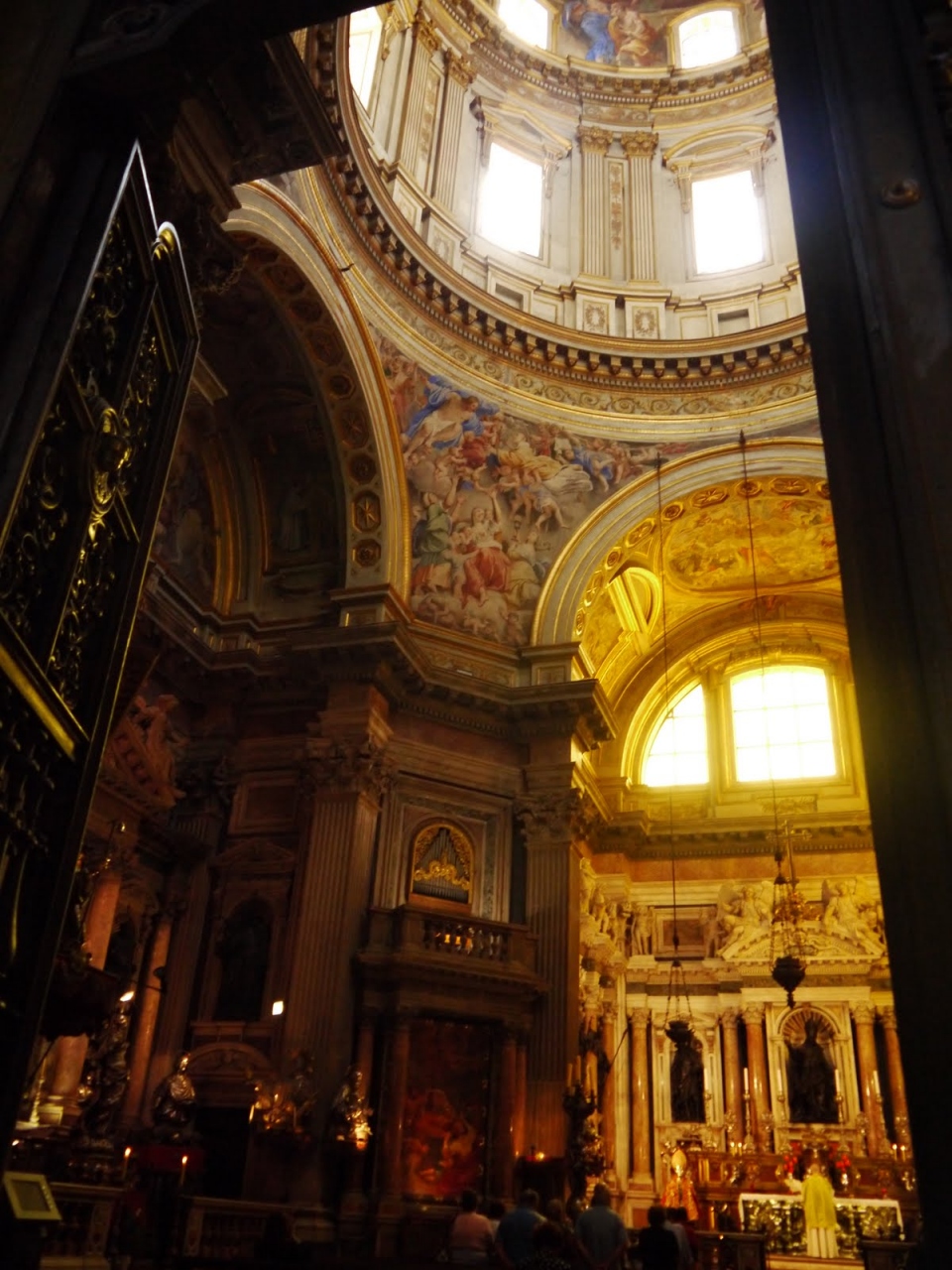 よりにもよって、こんなところでメモリが一杯になってしまい、写真がなくて残念です。教会の前の広場には、もうひとつ、ジェズ教会という、ちょっと変わった色、建物があるので、そちらに興味が向いてしまったのですが、