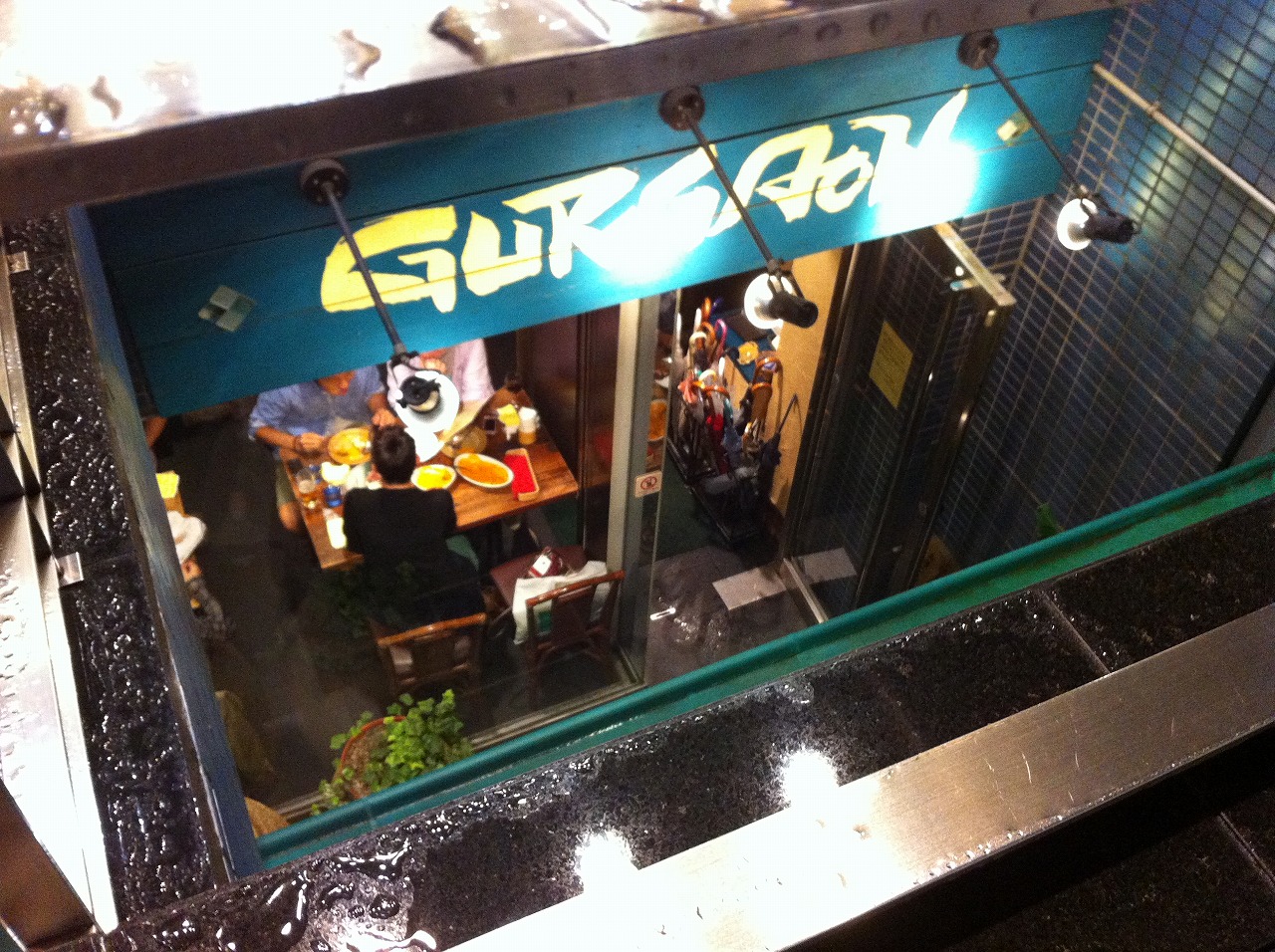 この店は、地下1階にあるのだけれど、店の表、テラスの部分が吹き抜けになっていて、開放的な感じ。レストランの室内は、壁にインドの遊牧民族っぽい飾りつけがされていて、そんな中でタンドリーをいただくと食が進む!- 旅行時期