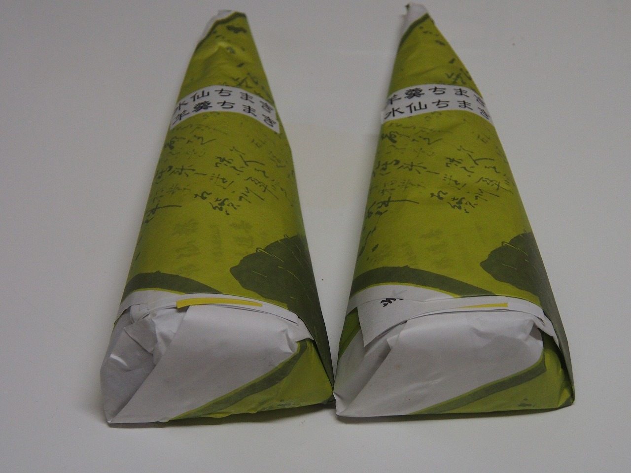 5本で一セット。水仙粽と羊羹粽の2種類がある。10本で7000円強。