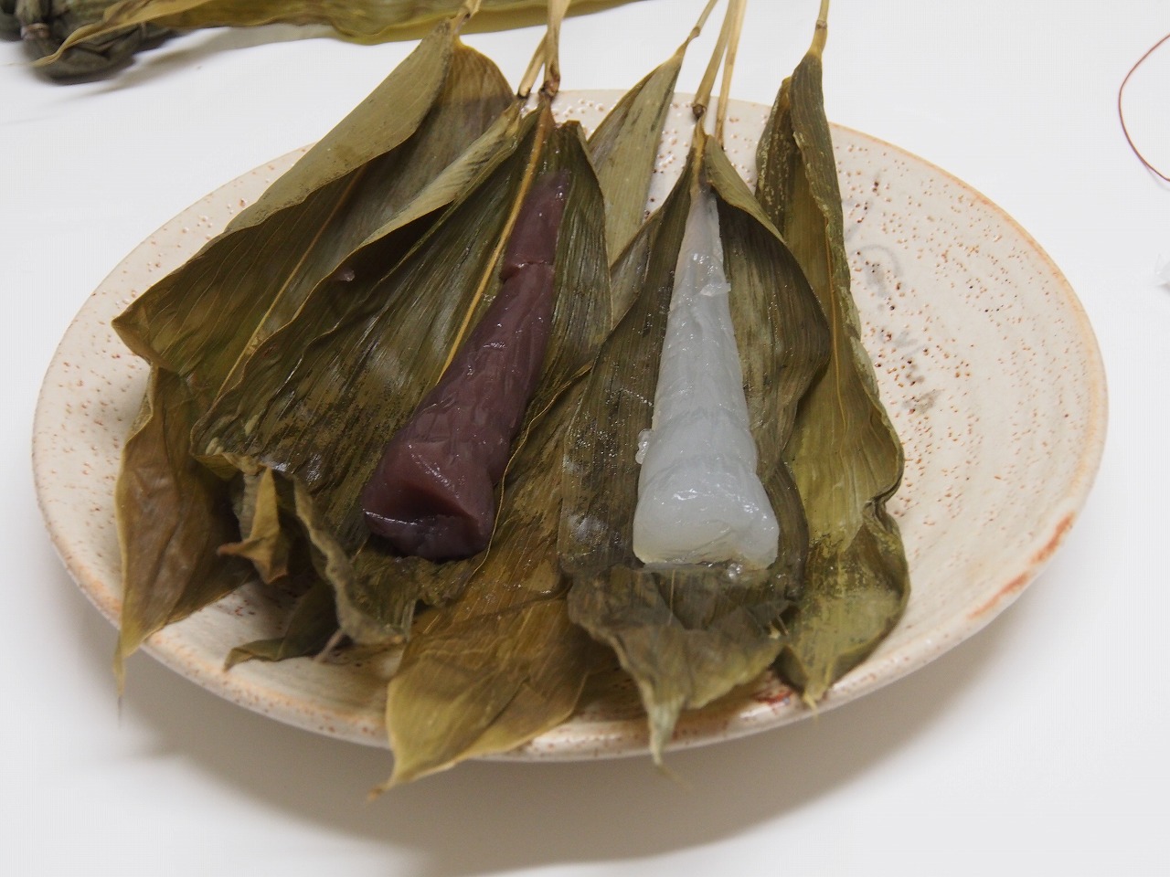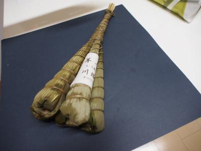 丁寧に葉で巻かれていて、茅の紐をほどくのも、儀式ばっていて、なんだか楽しい。