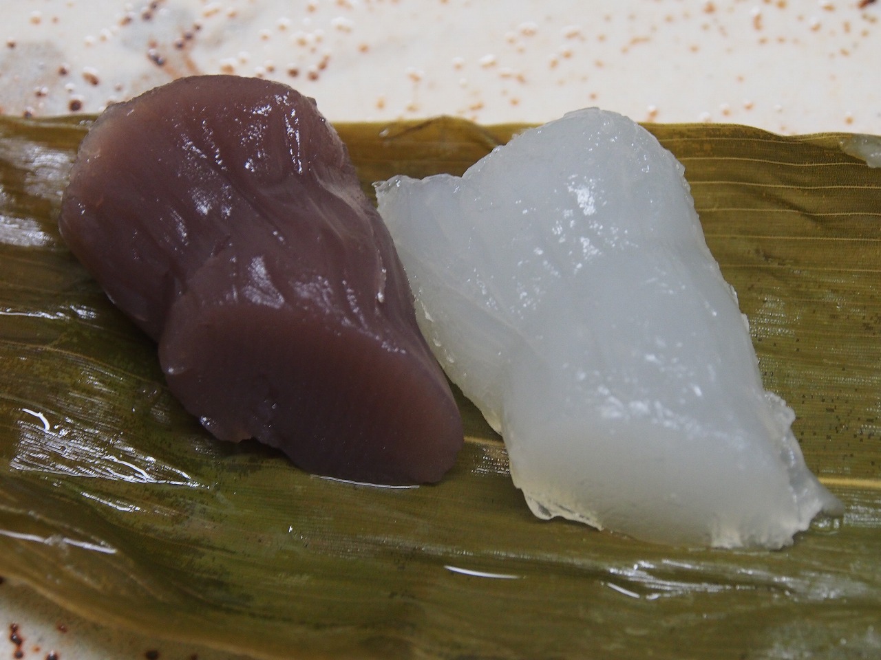 あっさりとした葛の水仙粽は、上品なお砂糖の甘さ。笹の香りも残る。羊羹粽は、それに餡をまぜたもの。水仙粽がお奨め!- 旅行時期