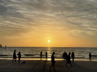 サンセットの時間には沢山の人が海の中や砂浜に集まって幻想的な光景を楽しんでいました。