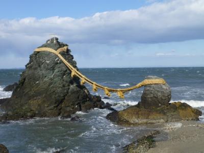 有名な夫婦岩。普通写真などで見るのは海面が凪いで、穏やかな風景なのです...