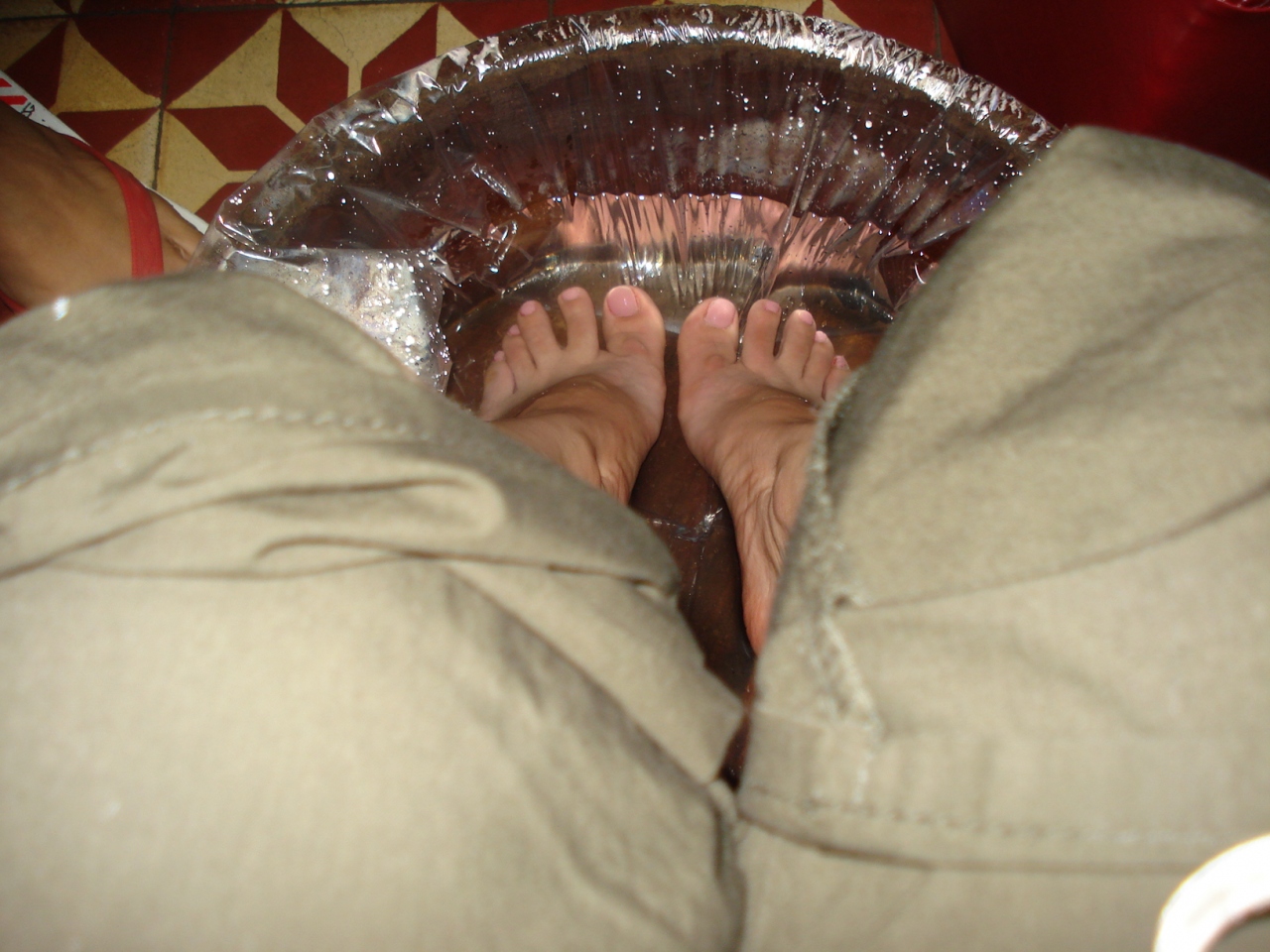 ガイドブックにはチップ込みで50分UD$7−と70分UD$10−の2つのコースはあると書かれていますが、店内に入るなりマッサージソファに案内され特にコースを聞かれることもなくフットバスがはじまりました。