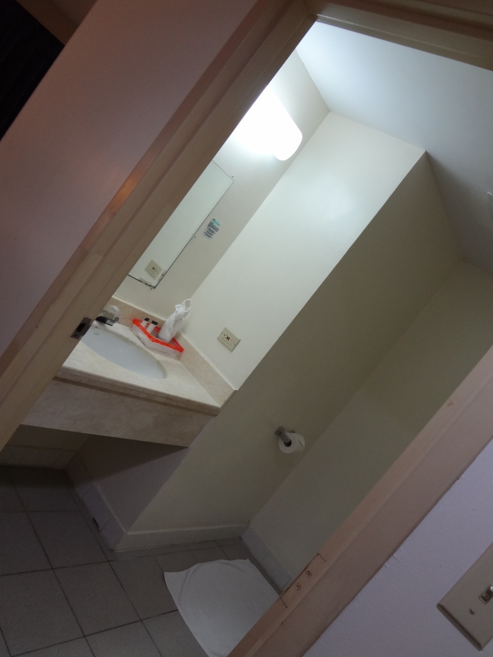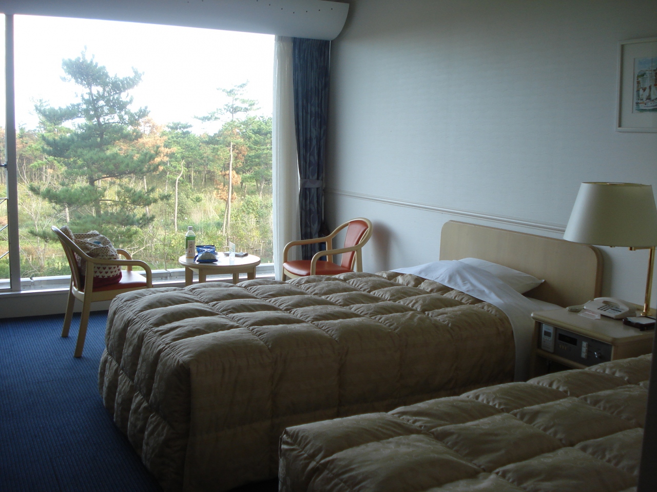 道路側の部屋は海側の部屋の2倍以上の広さがありましたが、胸の高さの窓があるだけでベランダもないため少し薄暗く感じました。