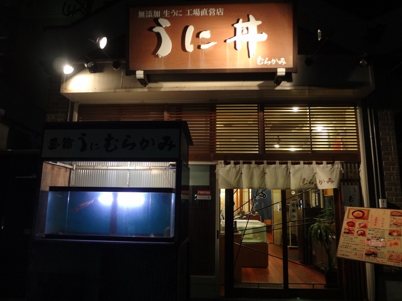 場所は函館朝市の一番奥(突き当り)で、店の前に生簀とメニューの看板が出ていたのですぐにわかりました。