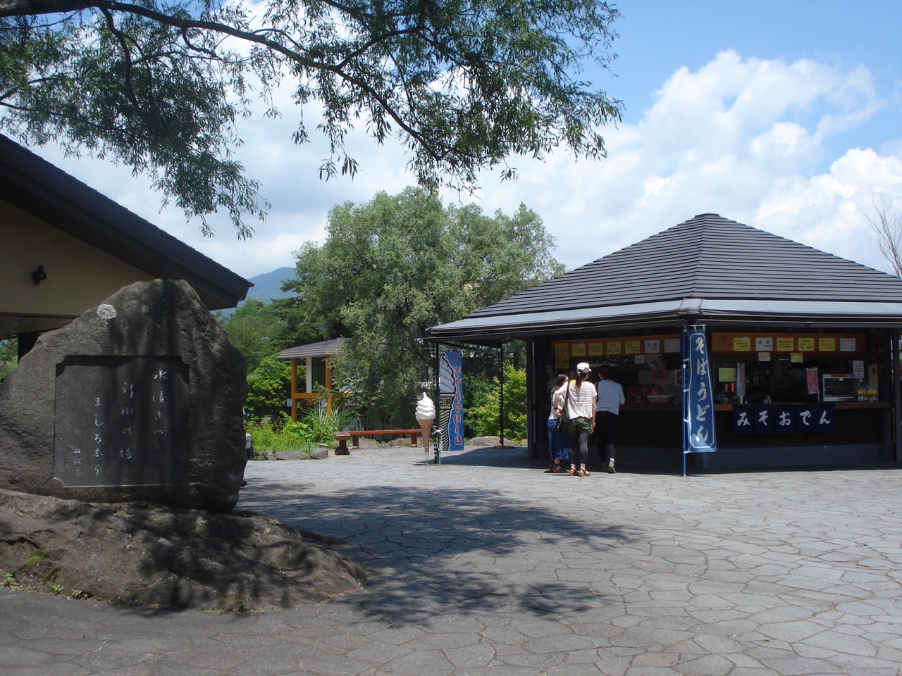 五色沼の駐車場~入り口付近にはお土産物屋さんや飲食店・休憩所などがあります。