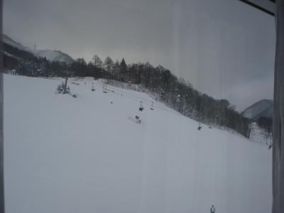 部屋の窓からは朝な夕なに真っ白なゲレンデが眺められ、ウィンタースポーツをしない私でも楽しめました。