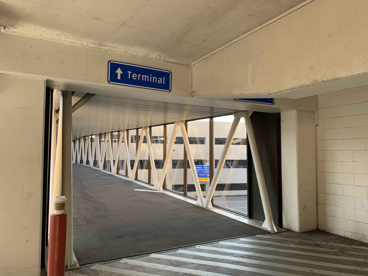 DFWには、ハイアットが2つあります。1つはTerminal Dに直結のグランド・ハイアットDFW。もう1つはTerminal Cから駐車場経由で連結しているこちらのホテル(ハイアット リージェンシー DFW インターナショナル エアポート)。つまりTerminal Cまで行けば後はちゃんと歩いていけます。