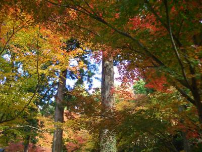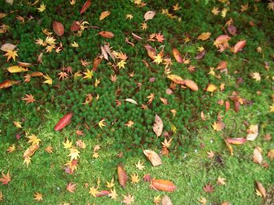 木々の間の地面には苔が生えていて、苔の緑と落ち葉の赤や黄がいい感じ。こ...