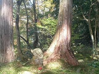 木々の間にかわいいお地蔵さんがちょこん★まるで日向ぼっこしているみたい...