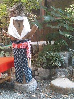 三千院からバスターミナルへの帰り道、ちょっとブキミな人形に遭遇。夜とか...