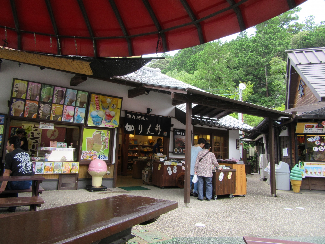 ここでは、ラーメンやうどんの軽食ができるほか、お茶を使ったデザート、アイスクリームやお団子が食べられます。神社でお参り後、古代の森を散策した後に休憩できますよ。