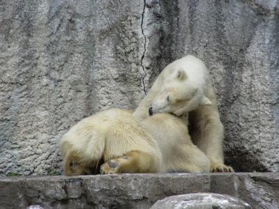 6月に大阪天王寺動物園から親子のホッキョクグマが帰って来ました。静かだったホッキョクグマ舎がにぎやかになっています。