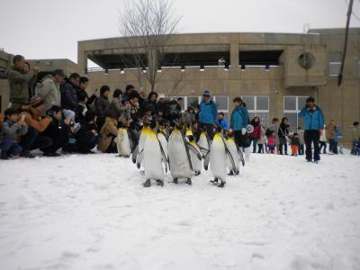 旭山動物園に一度は行きたいと思いANAの特定航空券を取って一人で行ってきました。旭川駅前のバス亭からバスに乗りましたが、動物園に行く観光客でバスは満席でした。3月の終わりに行った為、園内はまだ雪が積もり寒かったですが、ペンギンのお散歩も見る事ができて良かったです。ペンギンのお散歩は雪が残っている時期のみやっています。