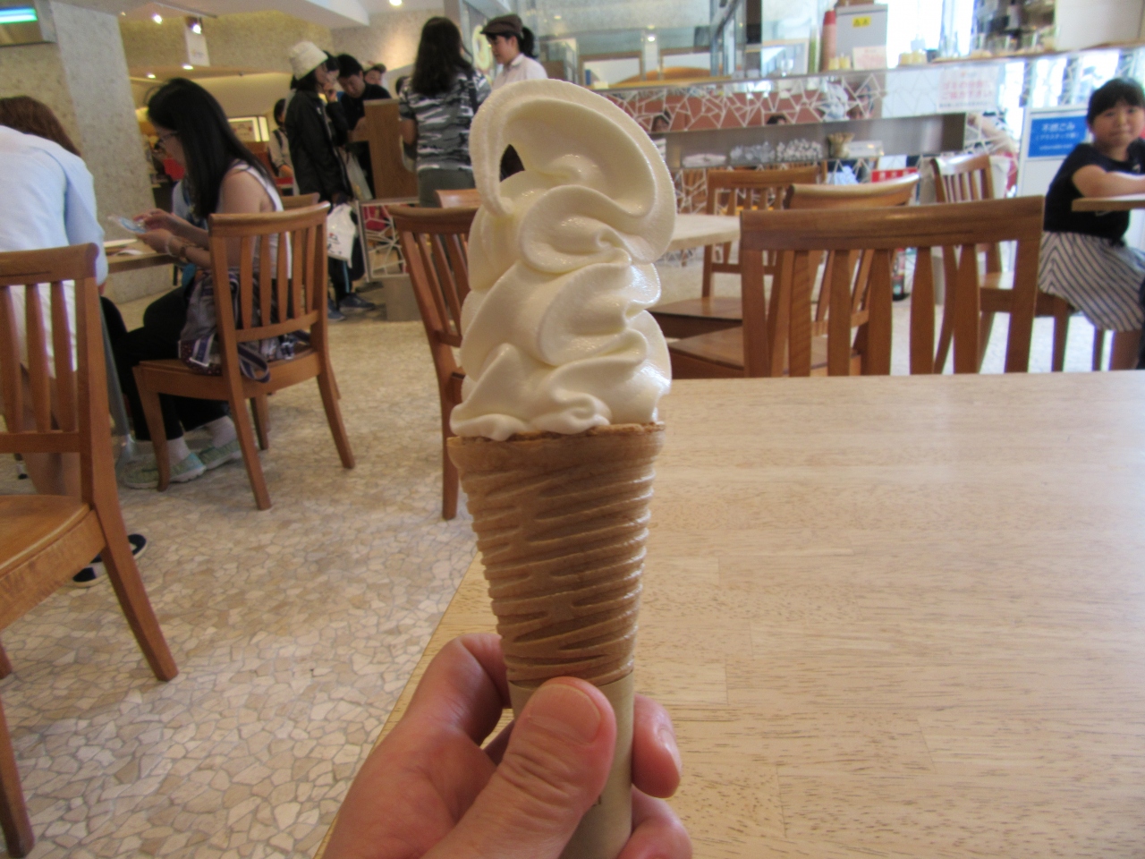 北海道の有名なスイーツ店でソフトクリームの食べ歩きをし、最後にルタオで締めようと訪れました。1階のカフェコーナーで購入しましたが、客をさばいているのは一人っきりでソフトクリーム一つ買うのにかなりの時間を要しました。店員さんも客をさばくのに必死で余裕がないのか不愛想でした。ソフトクリームは濃厚で美味しかったです。