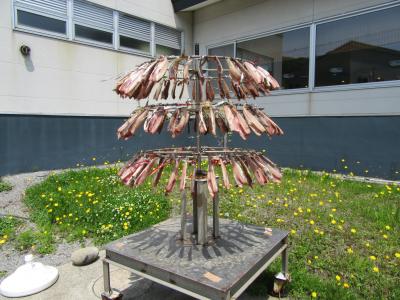 お店の外で開きにされた魚がくるくる回っていたのが面白く、バスツアーのお客さんも珍しそうに写真を撮ってました。回すことによって早く乾燥ができるのだそうです。