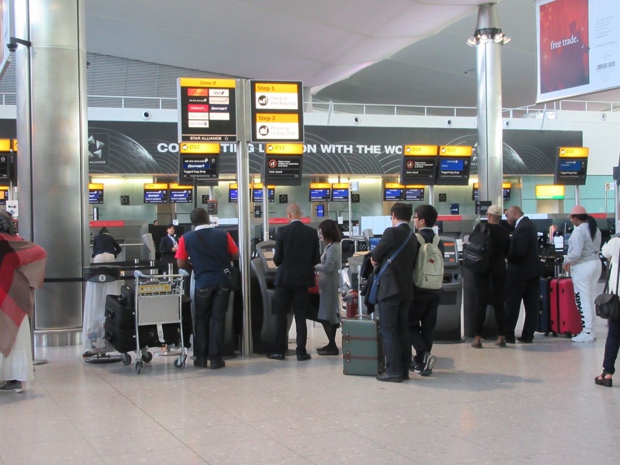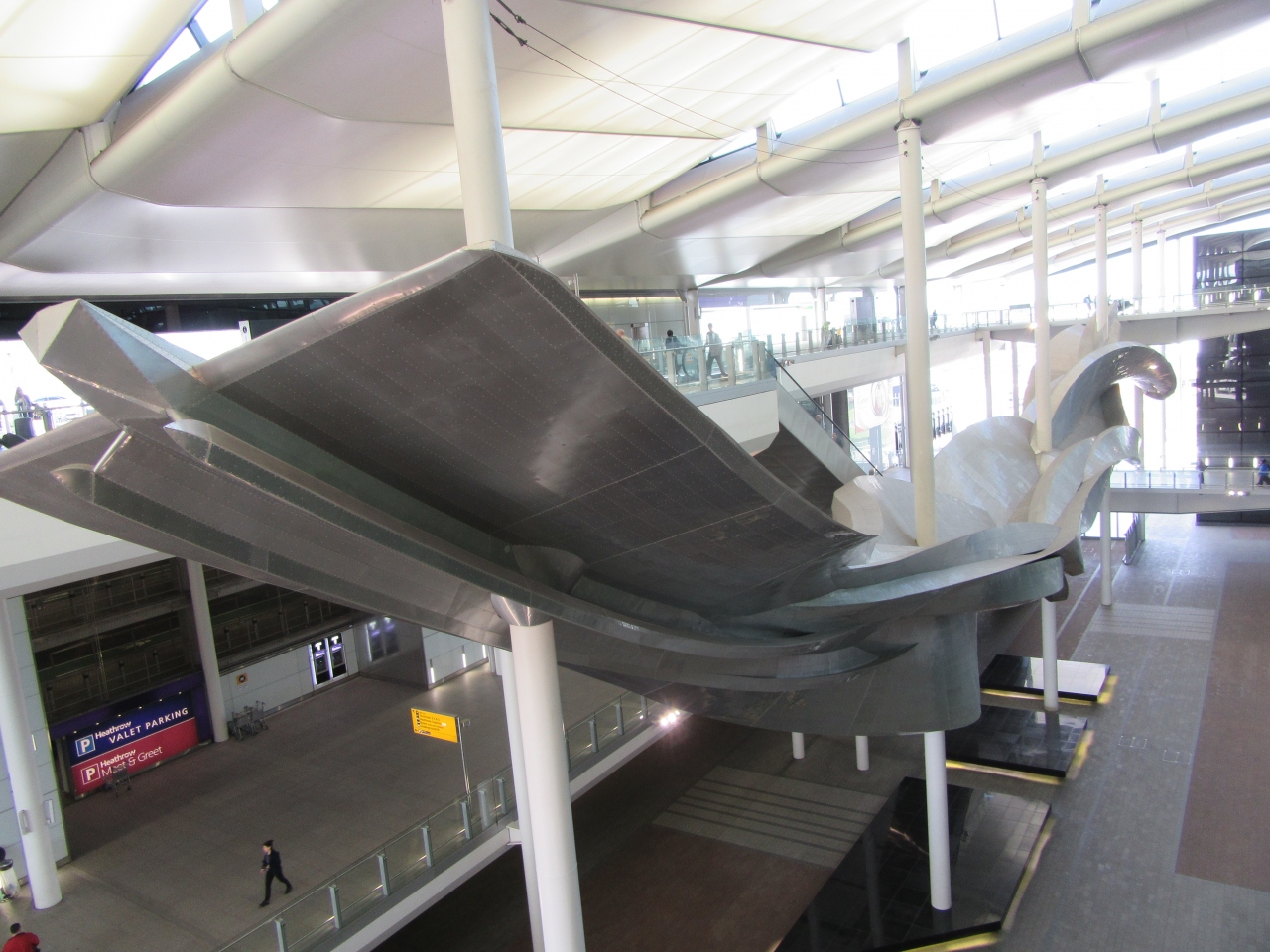 今回、初めてクイーンズターミナルと言われるターミナル2を利用しました。2014年にオープンしたばかりのターミナル2はショップも充実しており、飛行機の待ち時間も苦になりません。玄関口には巨大なオブジェがありますが、巨大すぎて全体像を見る事は出来ません。広すぎるターミナルなので、航空会社によっては15分ほど歩かないとゲートに着かない事もあるので、出発ゲートが決まったら早々にゲートに移動したほうが良いと思います。