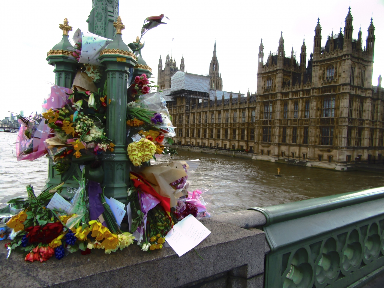 この橋は政治の中心地ウェストミンスターにあり、つい最近では凄惨なテロ事件があった場所です。橋の欄干には被害者を偲ぶ花がたくさんたむけられていました。事件から1週間後に行きましたが、たむけられた花以外は、いつものように大勢の観光客で賑わっていました。橋からはビッグ・ベンと、ロンドン・アイを眺める事ができ、夜景もきれいに見る事ができます。