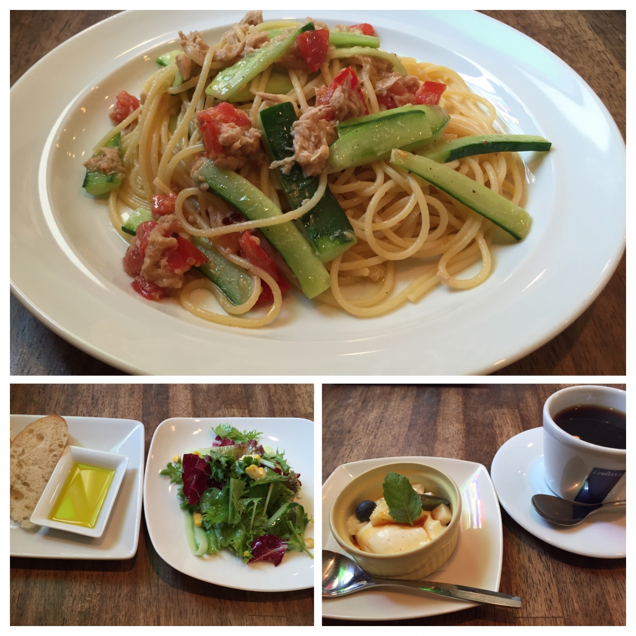 サラダ+フォカッチャ+スパゲッティ+ドルチェ+ドリンク+駐車券=1,200円でした。