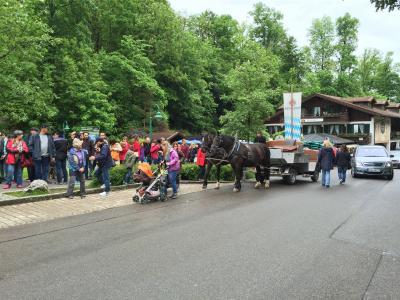 ふもとの駐車場から山の中腹にあるお城までの移動手段である、シャトルバスや馬車も混んでいます。