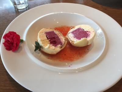 可愛らしい球体のスイーツにナイフを入れるとサプライズが!