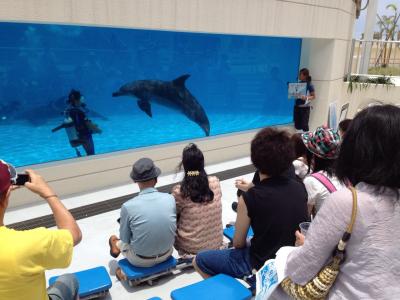 私達は、美ら海水族館見学からの流れでイルカのショーを見に行きました。