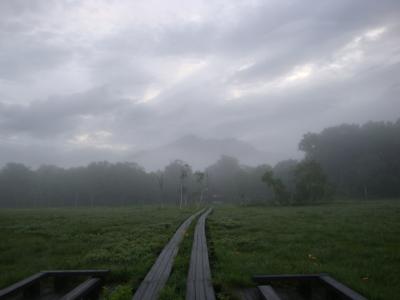 朝5時。朝もやの中から燧ヶ岳が姿を見せてくれた。