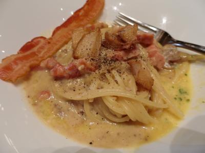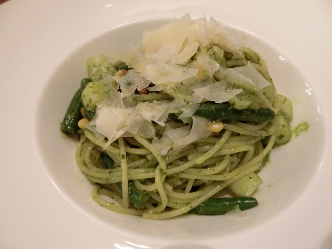 今回もあまり気乗りしなかったのですが、意外と美味しかったのです。メインメニューはパスタのみ。4種類から選べます。私はジェノベーゼにしました。連れの注文したカルボナーラも美味しかったみたいです。