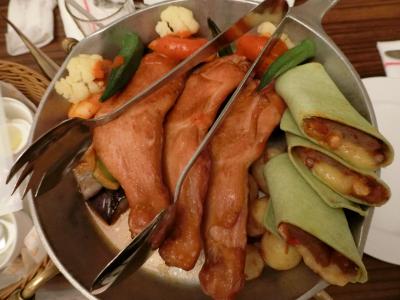 私は前菜盛り合わせ、メインの牛タン赤ワイン煮、チョコレートムースケーキ&ラズベリーシャーベットを選択しました。どれも非常に美味しかったです。