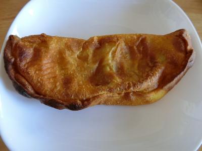 以前はミートパイを販売していましたが、2018年11月現在揚げピザを販売しています。無理やり持って帰るために購入しました。2種類ありまして、今回はシーフードのチーズカレーの方にしました。