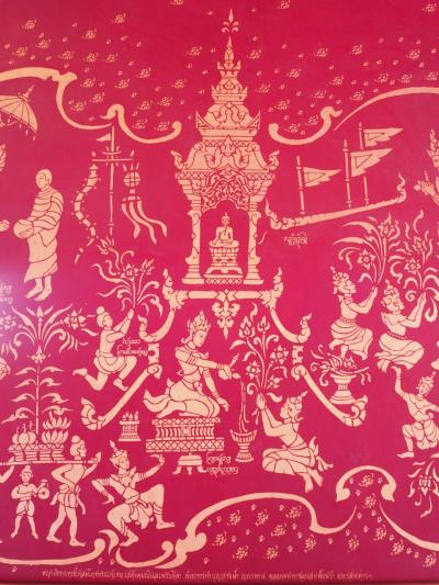 こちらの壁面の絵のタッチはリアルで何だかインドっぽい。孔雀の美しい彫刻...