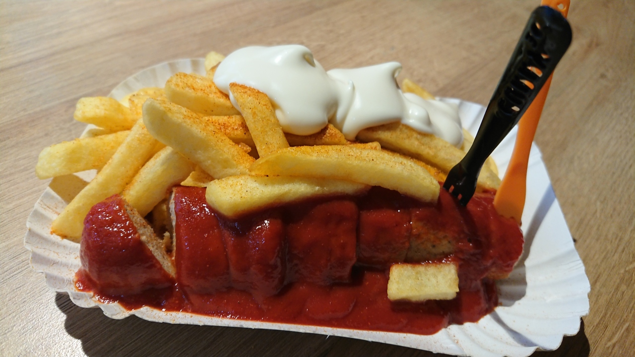 中央駅で買い物途中に見つけました。場所はWashingtonplatz出入り口付近の地上階にあります。日曜日の夕方でしたが開いているテーブルがあり、ほとんど並ばずタイミングよく注文できました。カリーヴルストの人気店は他にもありますが味、アクセスの良さから私は断然Curry36派です。トマトの濃ゆーいケチャップと、ポテトのマヨネーズの組み合わせが癖になり、滞在中必ず一回は食べています。ちなみにソーセージはドイツらしくビーガンとビオもあり、私はビオが好きです。