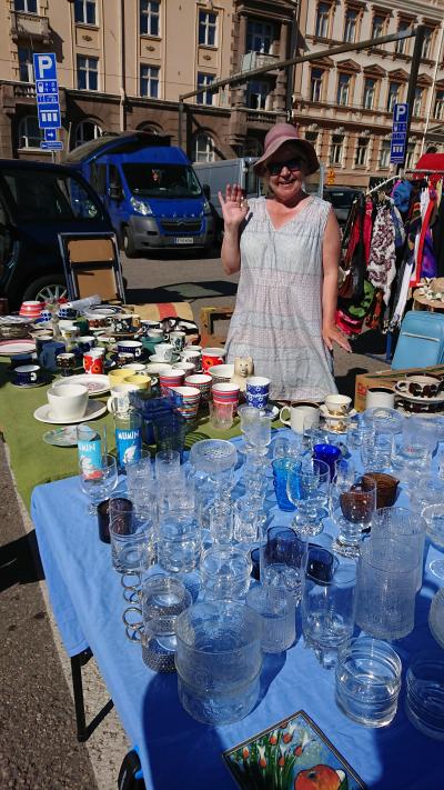 中央駅前から6番のトラムで行きました。季節にもよるでしょうけど、ここの蚤の市は小規模ながら掘り出し物が多いような気がします。私はイッタラのカステヘルミのお皿を買いました。相方はガラス製品を何点も買っていました。また、蚤の市に隣接する市場の中は買い物客が少なく、どことなく寂しい印象を受けました。