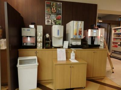 コーヒーとレモンフレーバーのリフレッシュメントウォーターを1階のラウンジ(兼朝食会場)でセルフでいただけます。