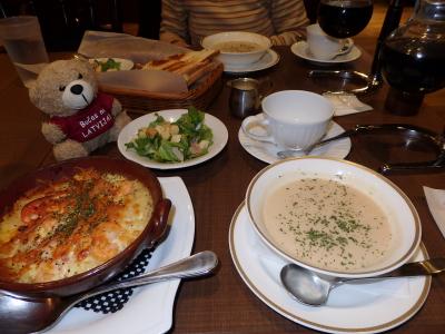 海老とトマトのクリームドリアランチ(1,100円+税)に、スープ(110+税)を注文しました。