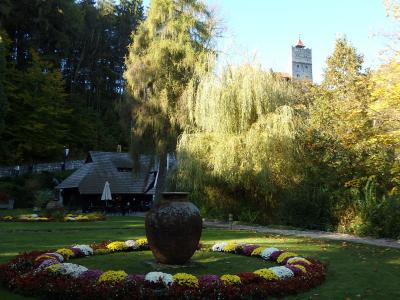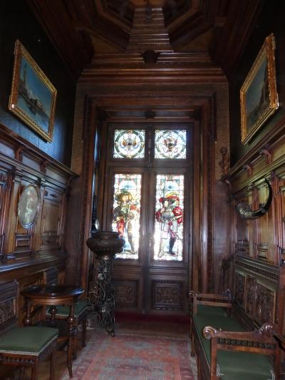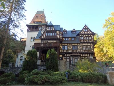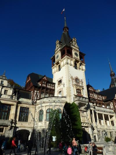 ペリショール城を横目に眺めながら黄葉の並木道を歩いてすぐのところにペレシュ城があります。