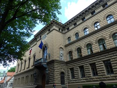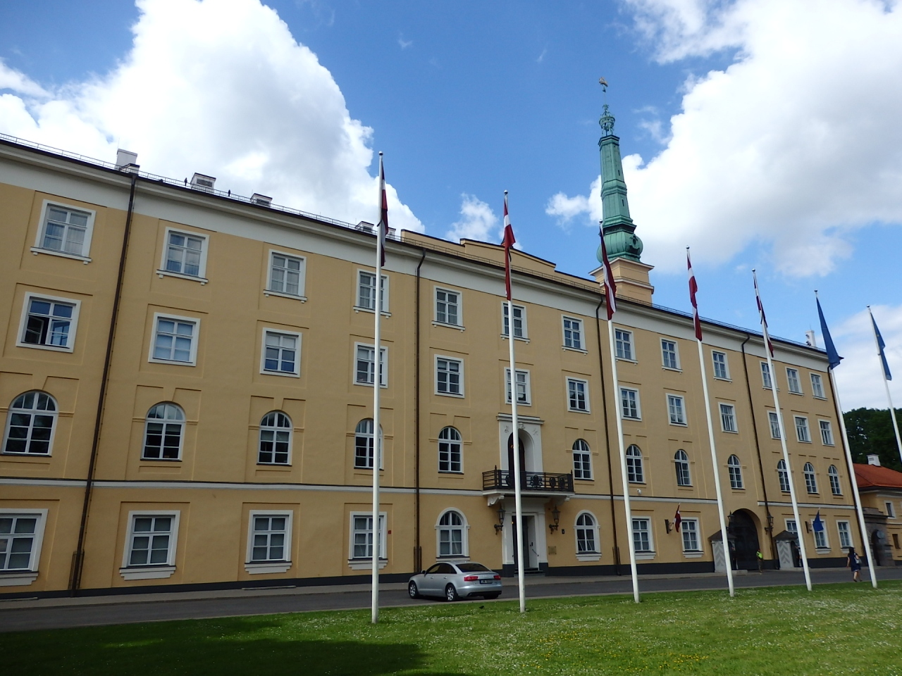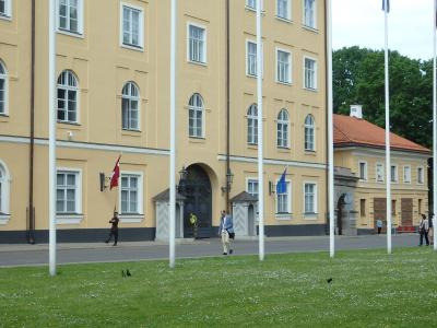 リガを徒歩観光の最中、聖ヤコブ教会のところにきたところで国会議事堂であることをガイドさんに教えてもらいました。