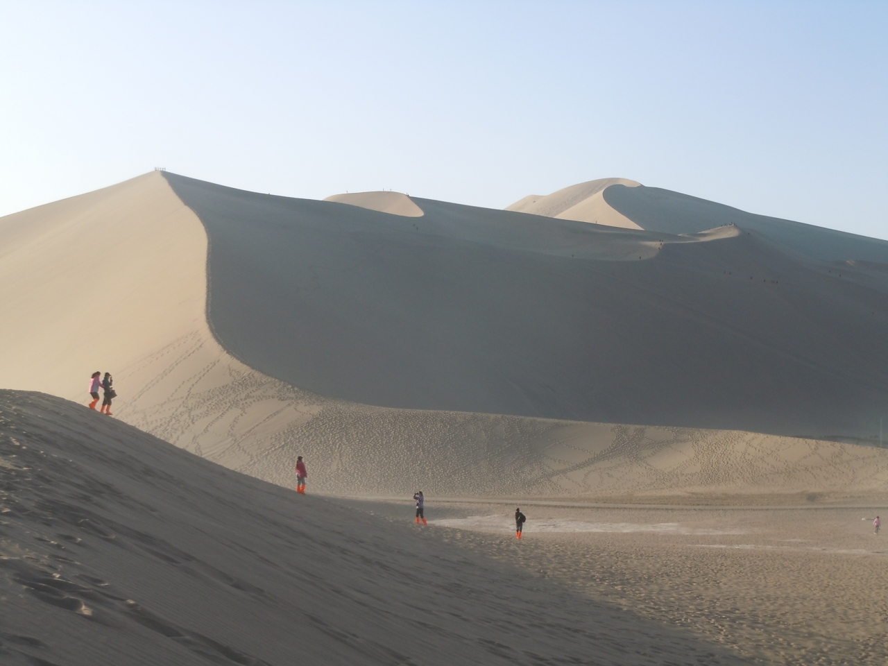 敦煌まで来ると回りはみな砂漠ですが、この鳴沙山は砂丘というか大きな砂山です。