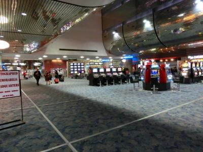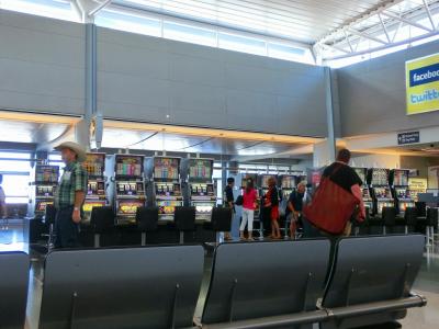 カジノで有名なラスベガスの空港なので、ターミナルの中にはスロットマシーンがいっぱいあります。