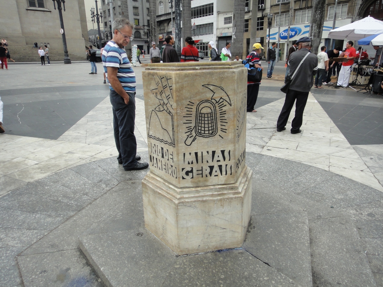 カテドラル メトロポリターナの正面にある、セー広場。地球の歩き方に、サンパウロの方位基準点「マルコ・セロ」があると書いてあったので探しました。私の手持ちの地球の歩き方には写真がなかったので、探すのに手間取りましたが、写真を添付するので参考にしてください。