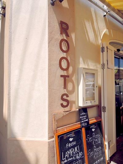 地中海の漁港、マルサシュロックでは通りに面した「Roots」という店のテラス席でランチをしました。朝捕れたての魚がショーケースの氷の上に並び、自分たちの目でみて選び、お勧めの調理法でオーダーを。Lampuki(ランプキ)は地元で人気のスズキに似た白身魚。グリルしたものにレモンをギュッとしぼって最高です!