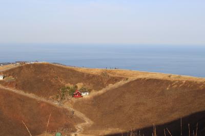 伊豆高原の大室山に登りました。登るといっても、バス停を降りてすぐにリフトに乗ると10分で300Mの山の山頂です。大室山は休火山ですが、外輪を歩いて一周まわると伊豆半島や大島などが見られて感動しました。
