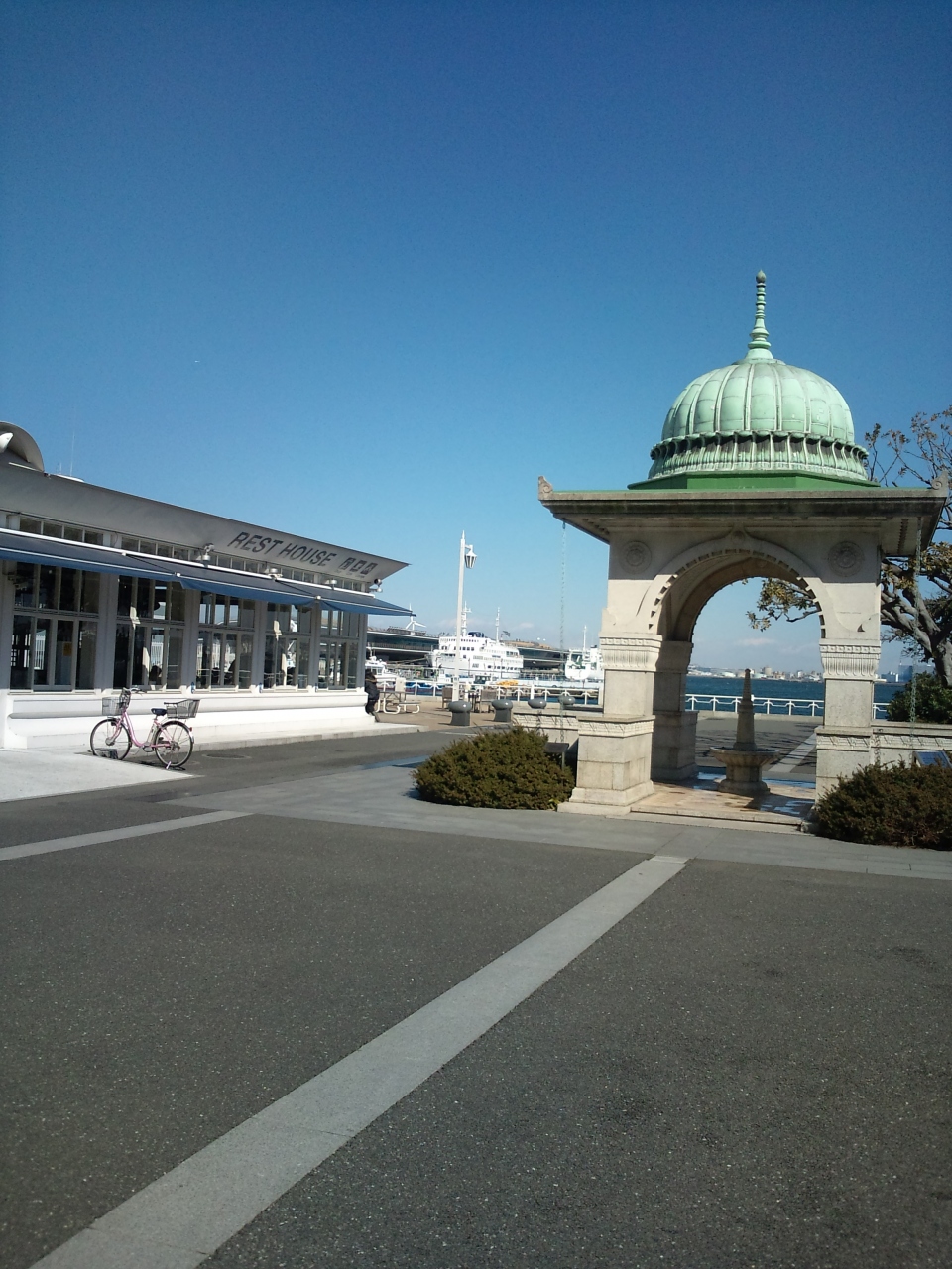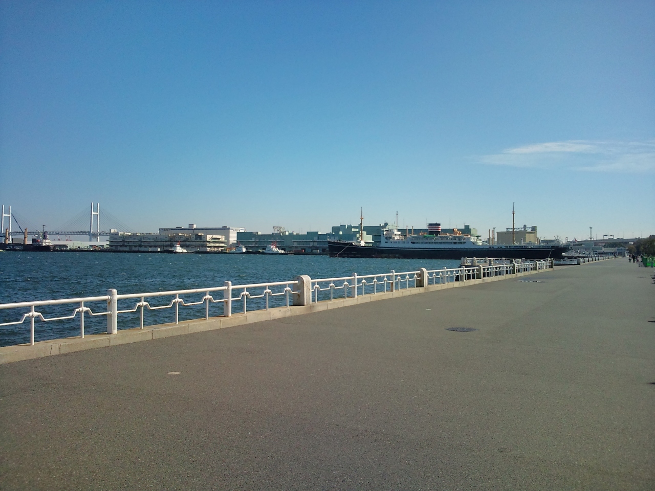 山下公園からつながる大桟橋は横浜港の旅客ターミナルです。2002年に近代的にリニューアルされ、3万トンクラスの客船が複数着岸でき、なかにはレストランやコンサートホール、駐車場があります。全体はくじらをイメージしているとのことです。