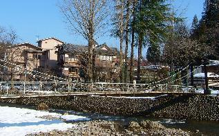 吊り橋が宿の前に架かっていて絵になる風景です。