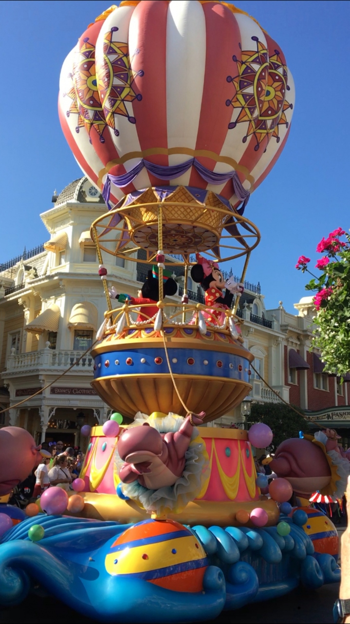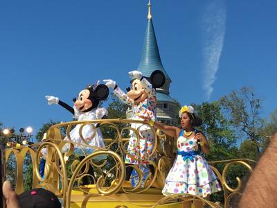 私はシンデレラ城の前にいましたが、そこでミッキーミニーのフロートが止まり踊っているところを見れました。