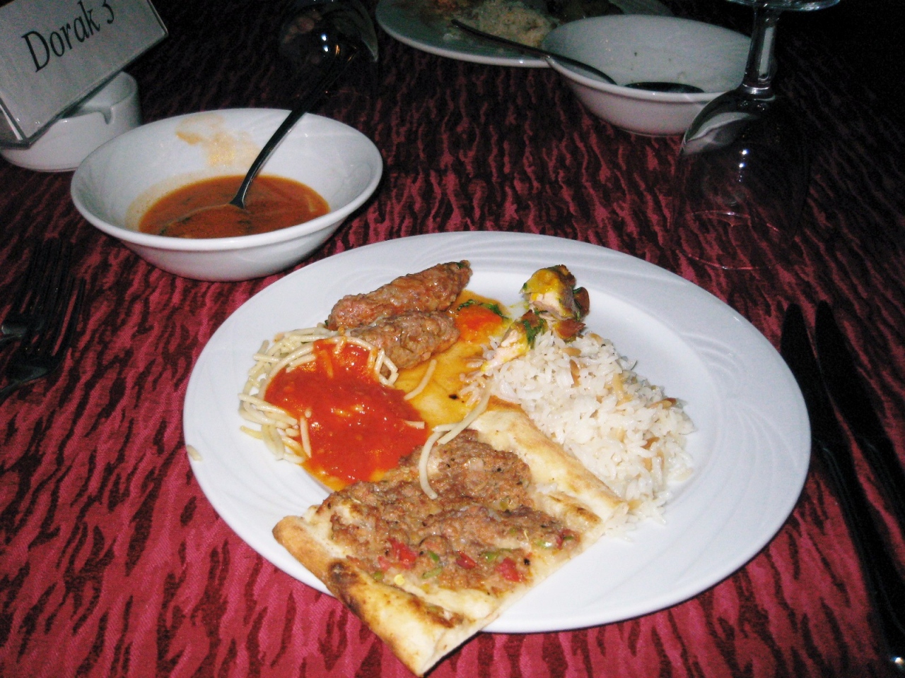 夕食はいわゆるビュフェ形式。トルコ風ピザがわたしの口に合いました。たくさんいただきました。