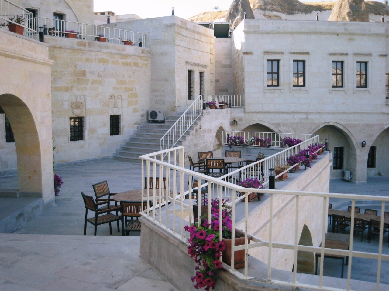 ホテルのテラスもきれいだった。部屋のランプもすてき。部屋はそんなに広くない。ただ、洞窟っぽさはそんなに感じられなかった。エレベーターが初めてなタイプ。目的階に到着したら、自分で中からドアを開ける?、うまく表現できずすいません。