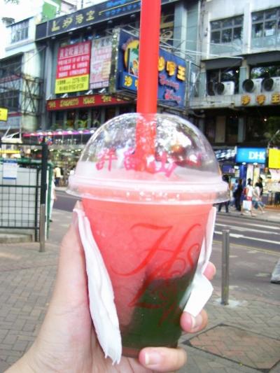 個人的に一番おいしかったのはアロエゼリー入りのスイカジュース。ほんのり甘いスイカのジュースに、プルプルのアロエが入ったゼリーは相性抜群。暑いときに飲むと、本当に最高でした!!歩きながらも飲めますし。